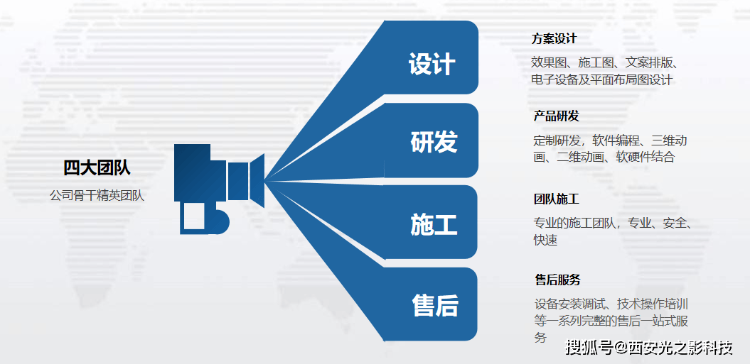 光之影办事:连系校园场景取青少年认知特点,定制设想“进校园”从题展厅,配备学问互动抢答屏、收集平安互动终端等设备,供给一坐式施工取调试办事。