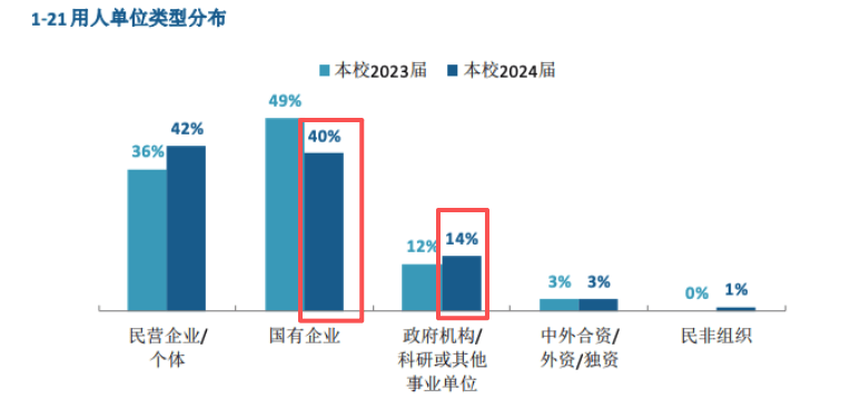 学校最新发布的就业数据显示,14%正在机构或其他事业单元就业,全体铁饭碗就业率跨越50%。